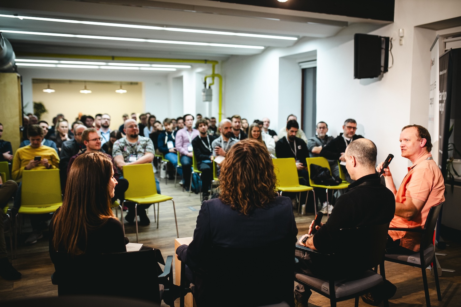 The AI panel, moderated by Michaela Malatín, was the most direct part of the evening. It focused on how AI changes engineering, security, and careers — without pretending the tradeoffs don’t exist.